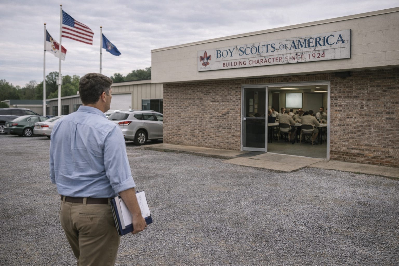 The council service center was a single-story building on a county road between a veterinary clinic and a self-storage facility, and it looked like it could have been either of those things. It had a flat roof, a gravel parking lot, and a flagpole flying the American flag and the Boy Scouts of America flag and a third flag that Corey did not recognize and that turned out to be the council’s own flag, because scouting was an institution that believed every level of its organization deserved a flag. The sign out front read BUILDING CHARACTER SINCE 1924 in letters that were missing the second A.